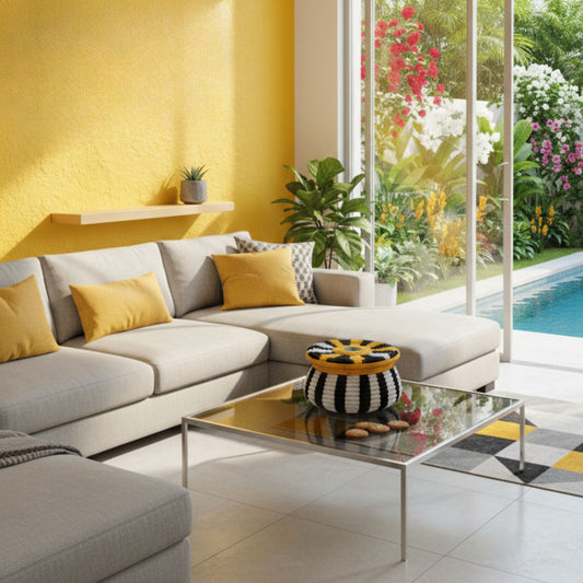 Handwoven Basket and Wall hanging set --- Black, White and Mustard