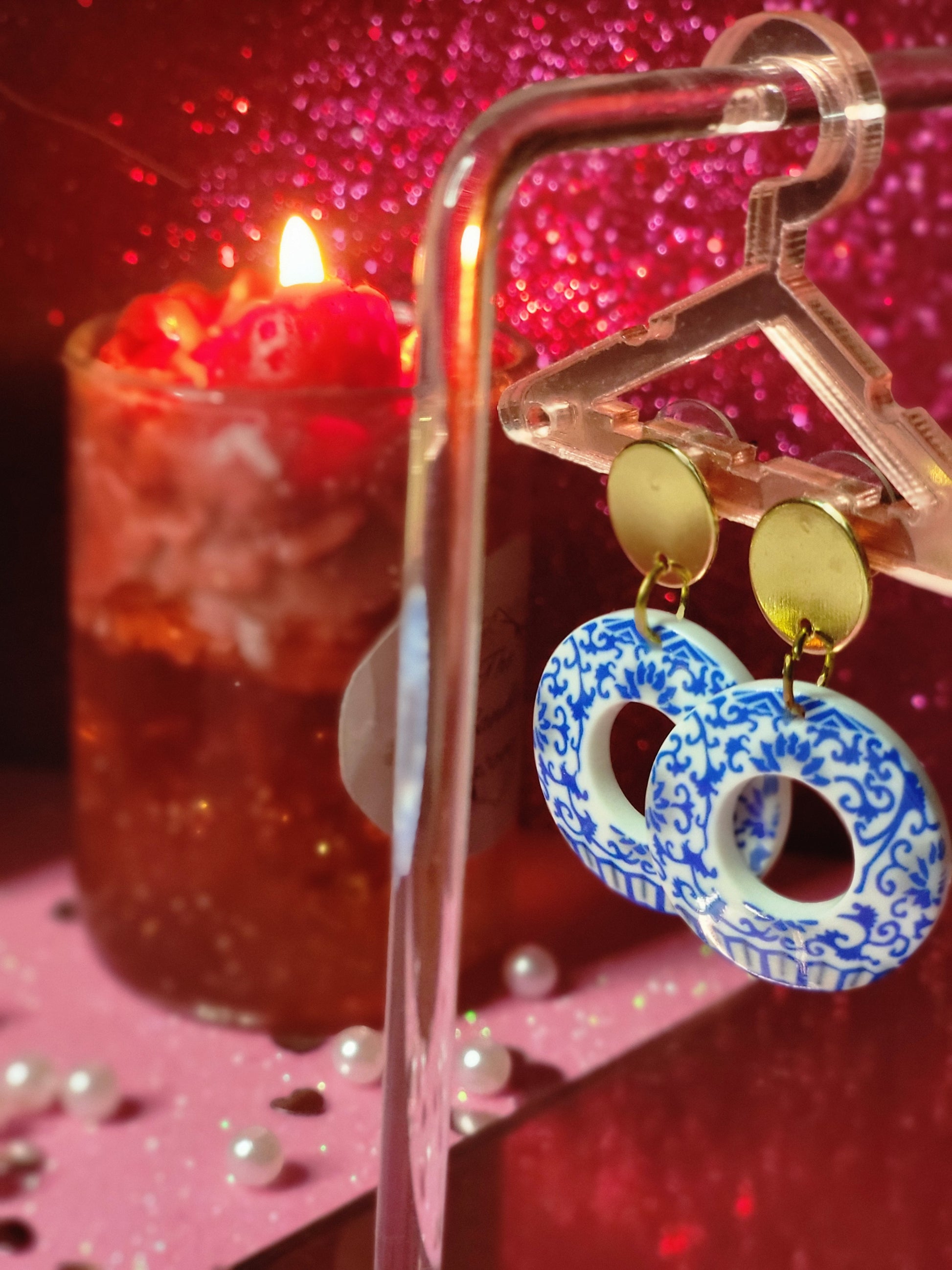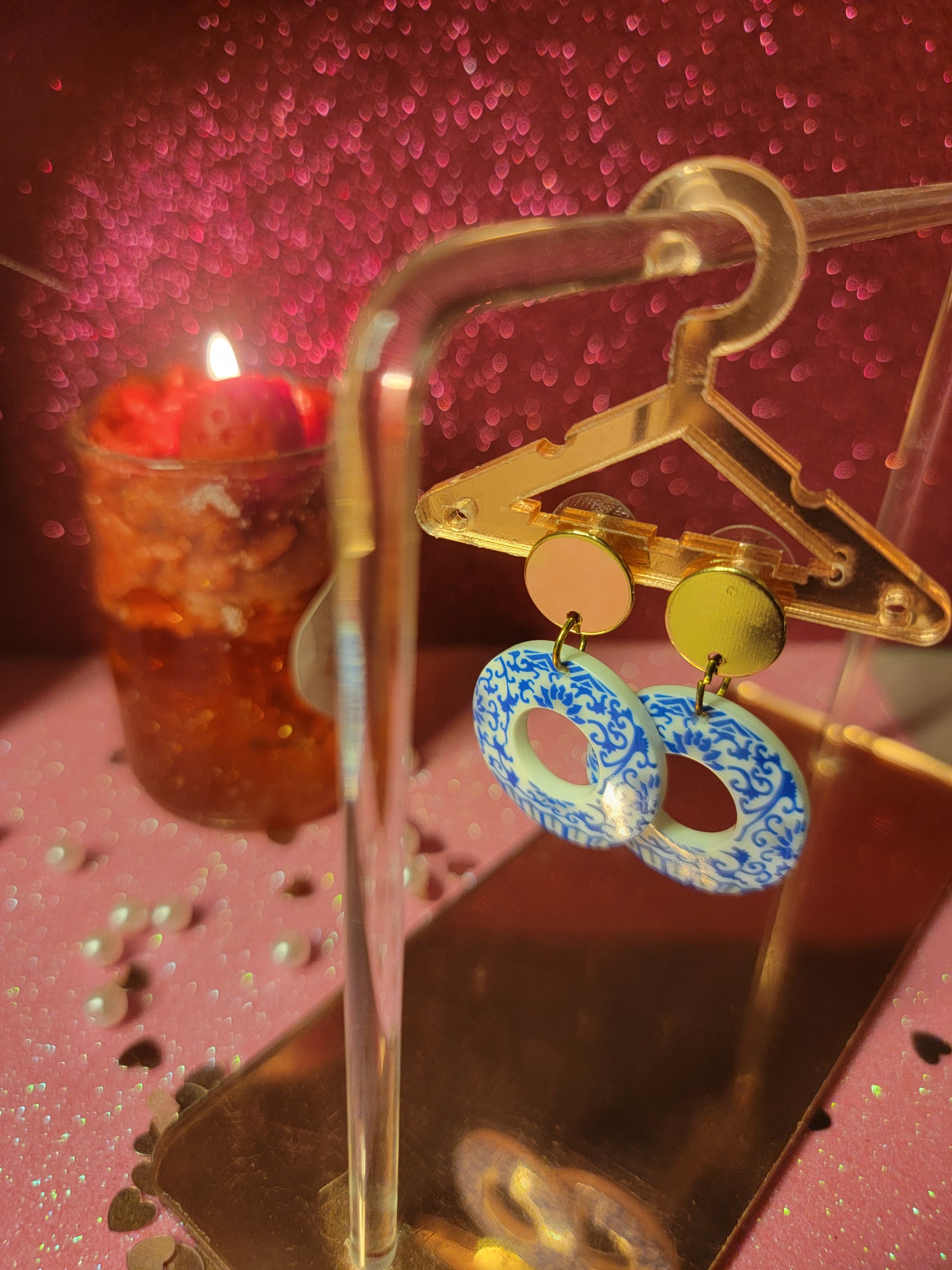 Blue and white floral earings