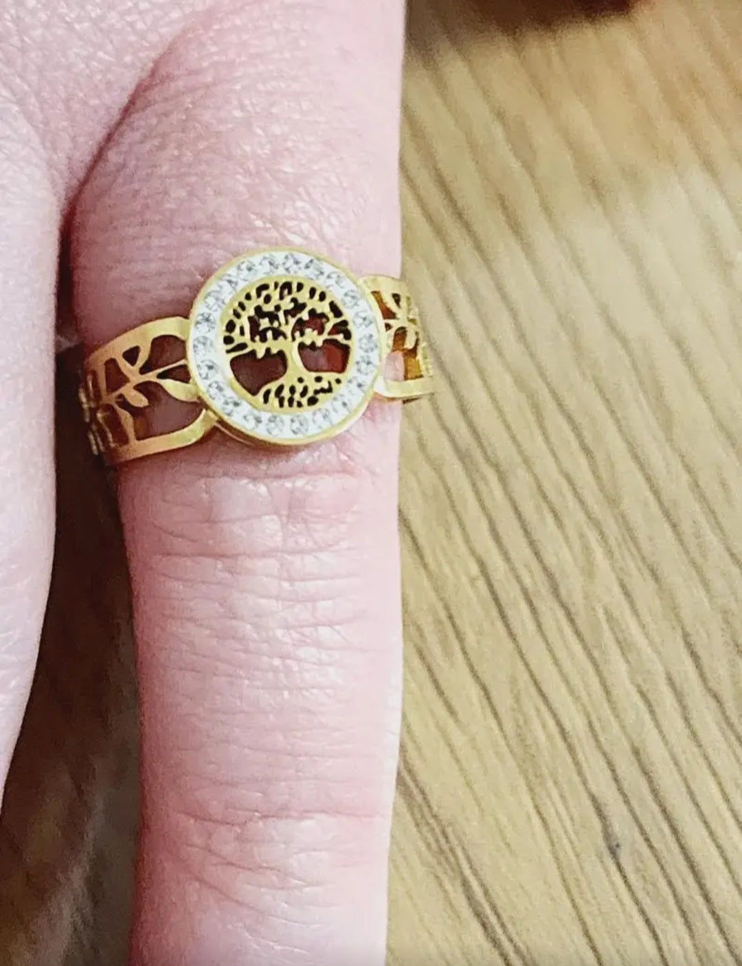 Exquisite Luxury Tree of Life Ring adorned with shimmering Rhinestone Accents, crafted from durable stainless steel. This timeless fashion accessory symbolizes growth and harmony, making it a versatile piece for all seasons. Perfect for adding a touch of elegance to banquets or as a thoughtful gift for someone special, this ring embodies sophistication and meaning in every detail.