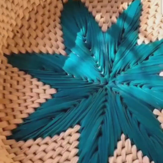 Handwoven Date Palm Basket with Turquoise Star Design