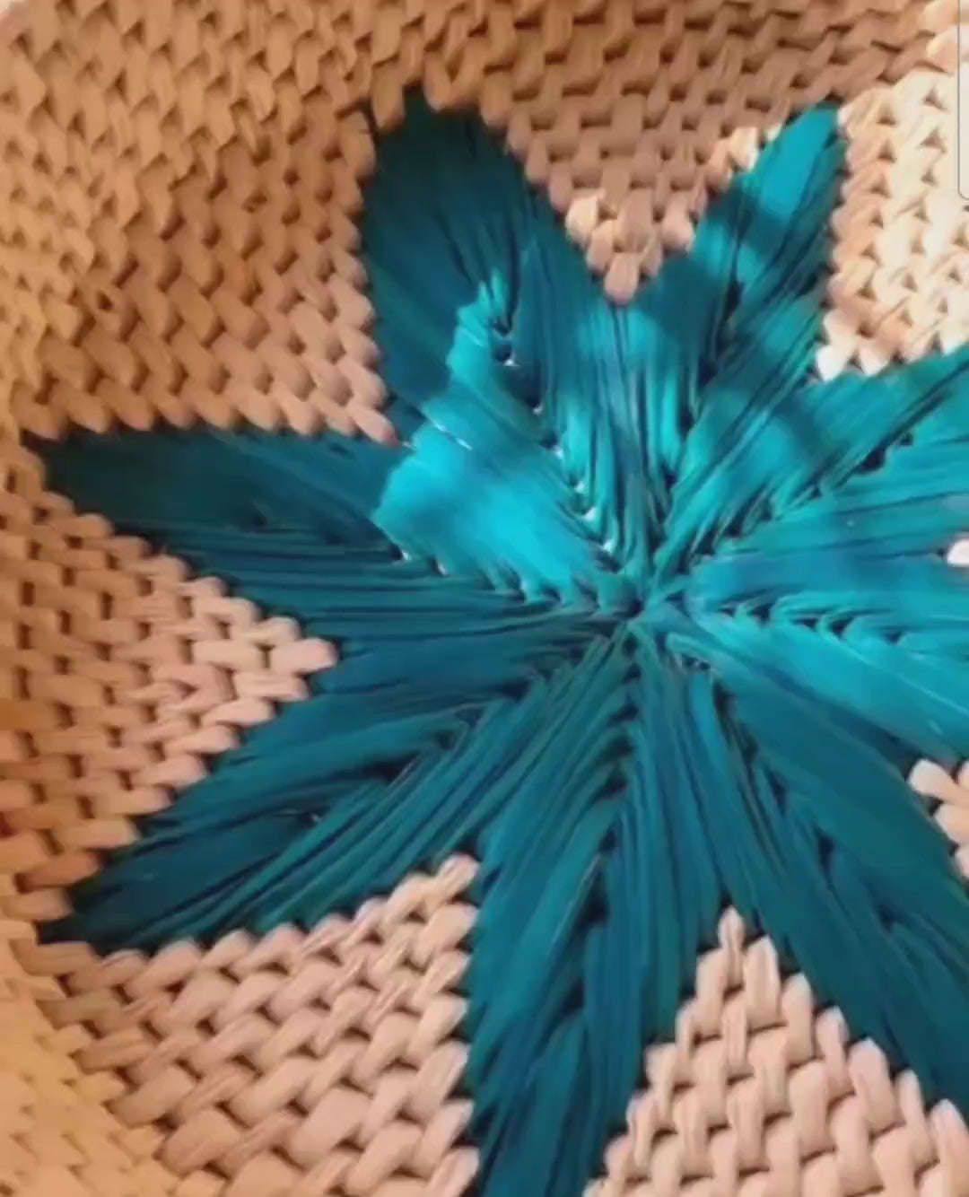Handwoven with a beautiful turquoise star design.