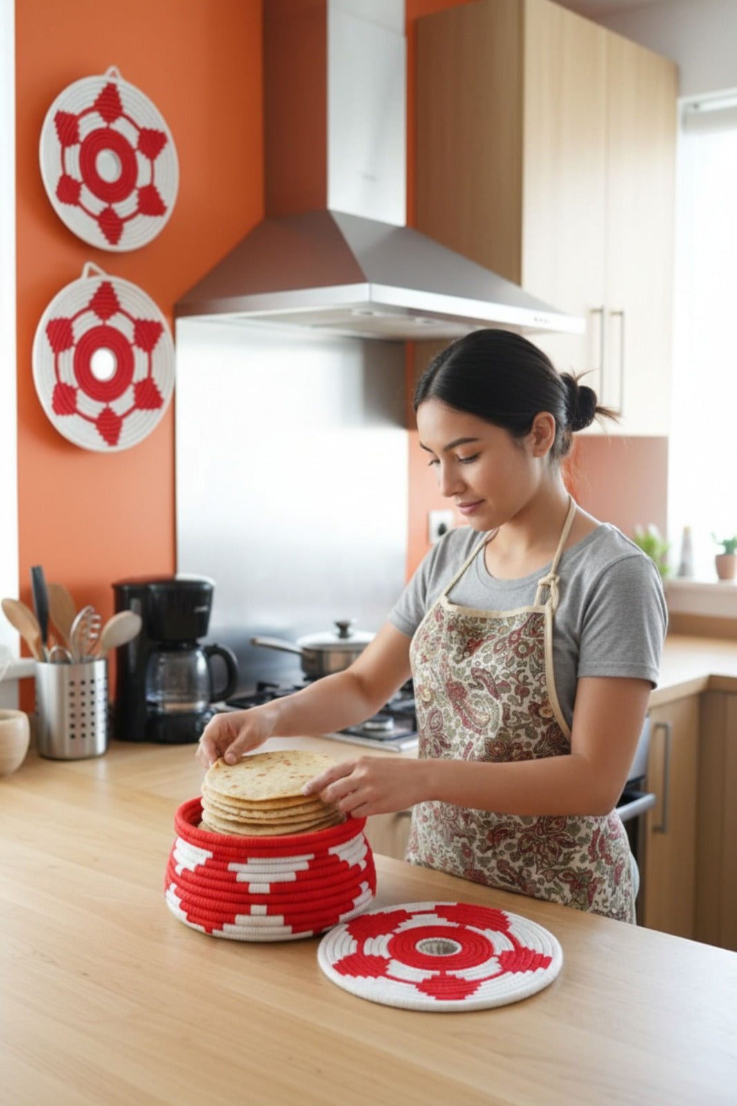 Add a pop of culture and color to your home with this handcrafted palm leaf basket, beautifully woven in striking red and white patterns. Each piece is made with love and care by local artisans using natural palm tree fibers, showcasing a perfect blend of tradition and creativity.