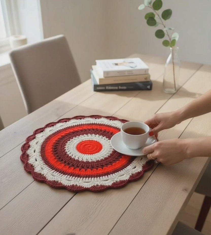 Upgrade your table styling with our beautifully handcrafted beautiful red crochet spread.